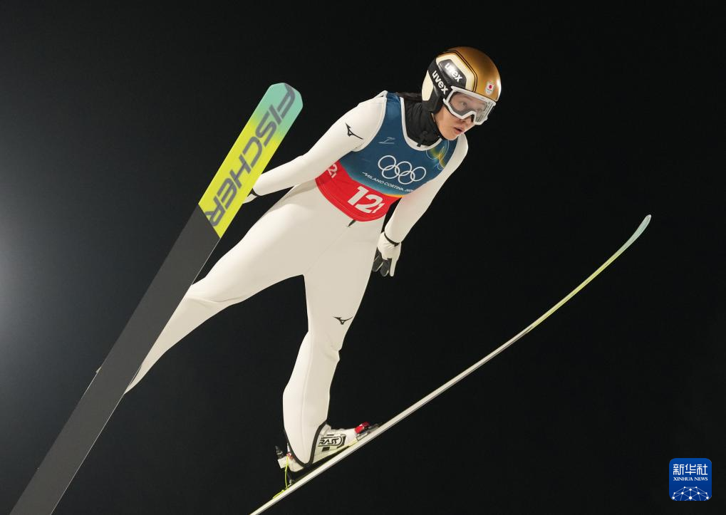 2月10日,日本队选手高梨沙罗在比赛中。日本队获得季军。