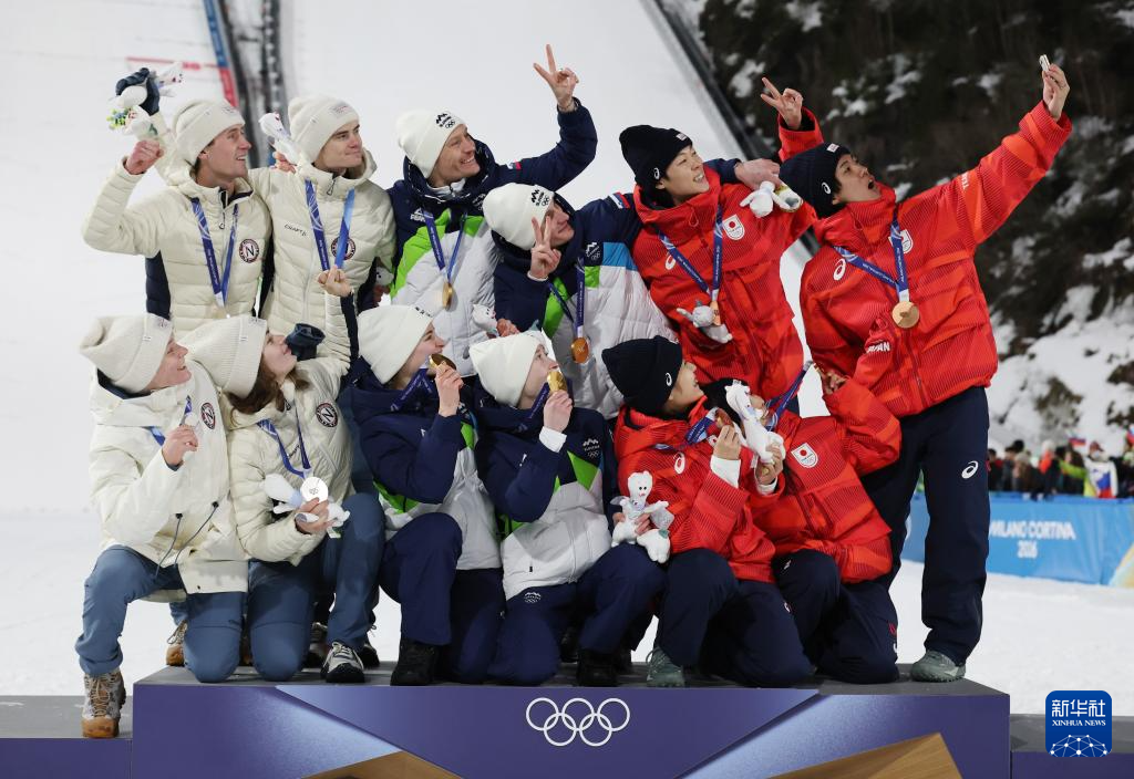 当地时间2月10日,米兰-科尔蒂纳冬奥会跳台滑雪项目混合团体比赛在意大利普雷达佐举行。